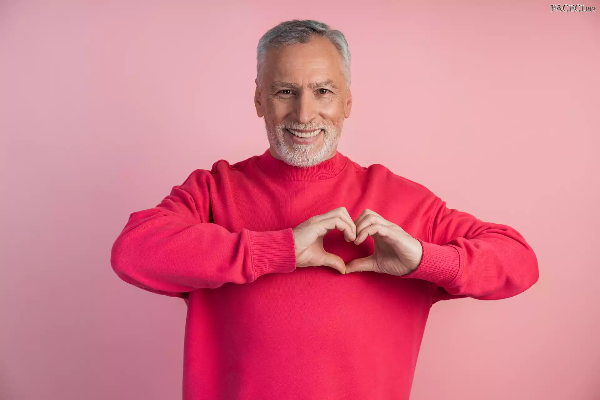 Mężczyzna, Uśmiech, Sweter, Czerwony - faceci.biz